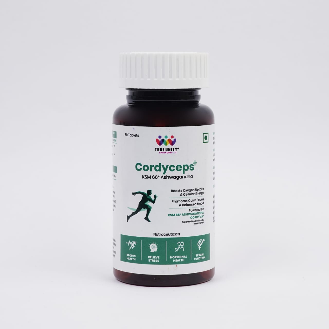 Cordyceps+ with KSM 66® Ashwagandha is a dual-adaptogen formula combining Cordyceps Militaris and Ashwagandha extracts to enhance oxygen uptake, stamina, and resilience to stress. It also supports hormonal balance, focus, and immunity for an active lifestyle.